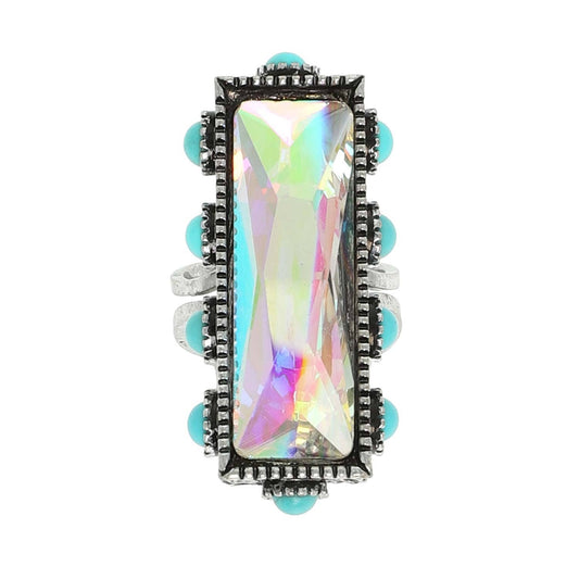 Western Rectangle Crystal Gemstone Stretch Ring