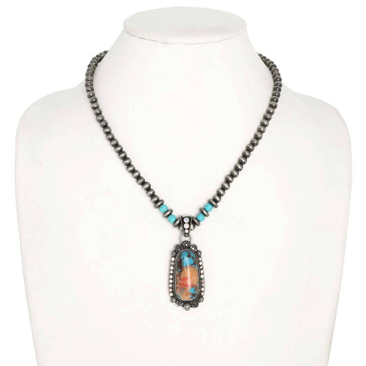 Western Turquoise Navajo Beaded Pendant Necklace