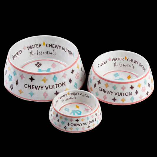 White Chewy Vuiton Dog Food | Water Bowl
